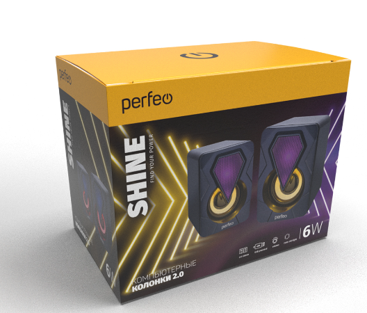Колонка Perfeo "SHINE", 2.0, мощность 2х3 Вт, USB, чёрн, Game Design, LED подсветка 7 цв
