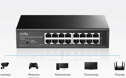 Коммутатор Cudy FS1016D L2 16x10/100Мбит/с, неуправляемый
